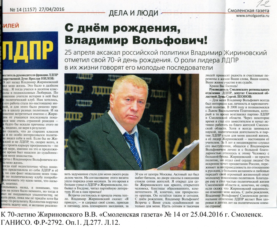 Деятельность Смоленской региональной организации ЛДПР